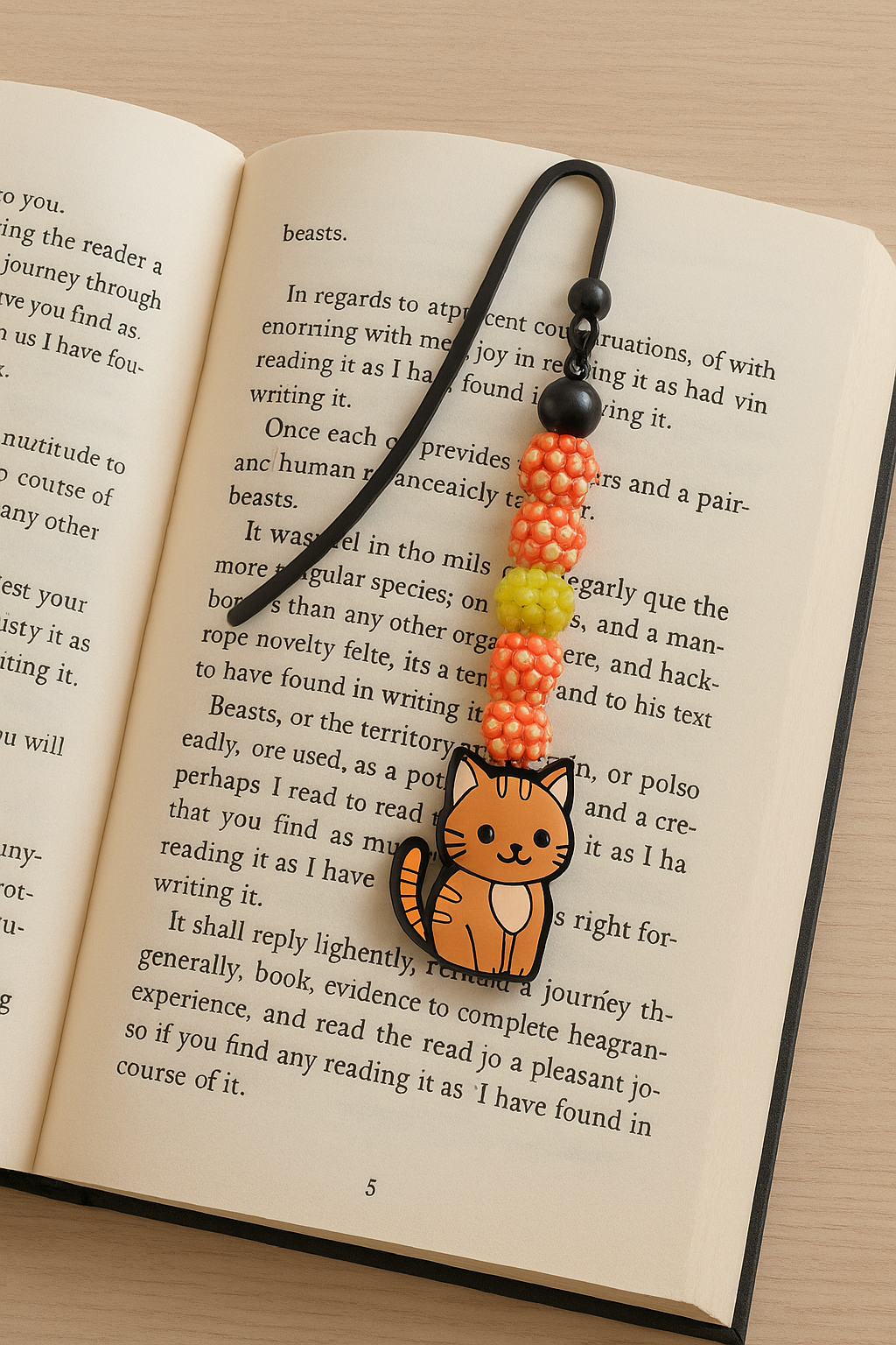 Ajoutez une touche de fantaisie à vos lectures avec ce marque-page fait à la main, unique et adorable ! Conçu avec soin, accompagné de perles en silicone et d’un pendentif.